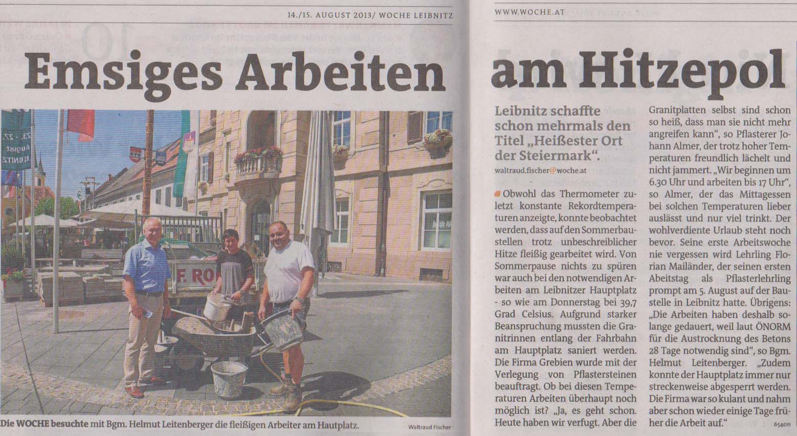 Trotz 39° wurde unermüdlich an der Verschönerung des Leibnitzer Hauptplatzes gearbeitet.